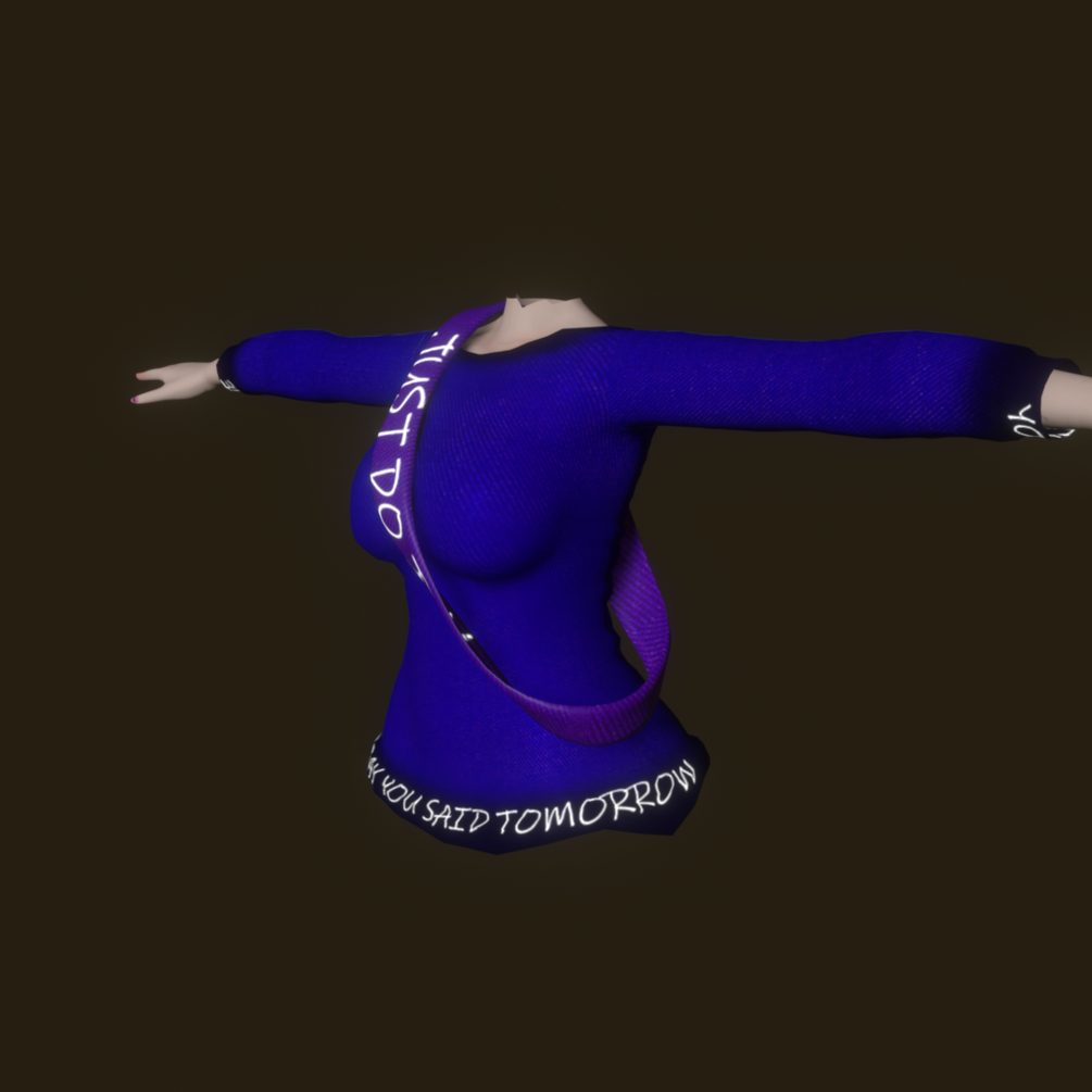 This model does not contain any kind of rig and will need to be weight painted onto any humanoid model you wish to use it on!