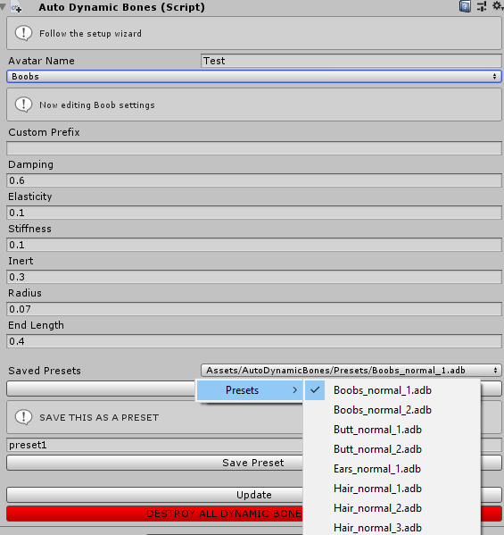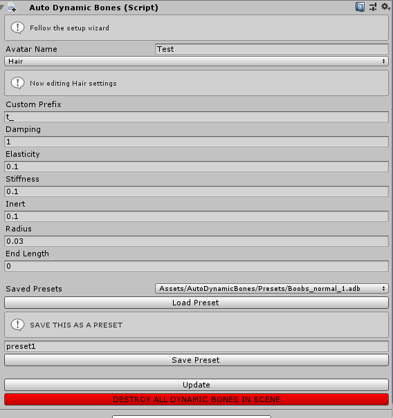 Easily setup dynamic bones on any humanoid model in Unity3D